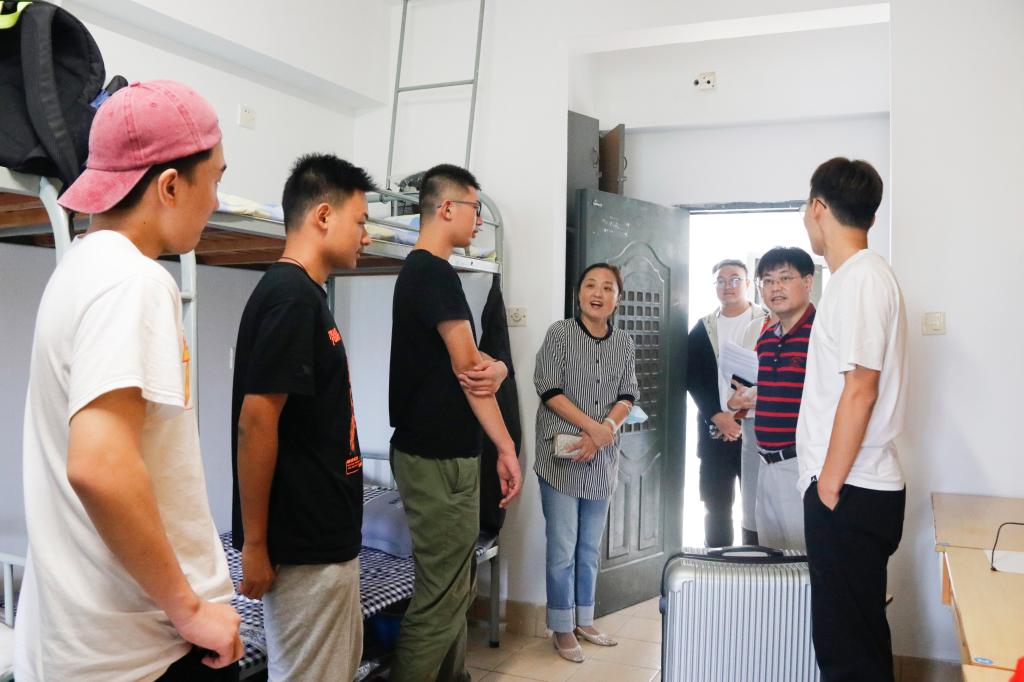 下午3点,院党委书记高雪梅一行人前往榴园、桃园看望从全国各地到校的新生,关心了解他们宿舍生活并进一步解答新生们提出的问题。对于学院领导的关心,新生表示很温暖,对未来大学生活充满期待。