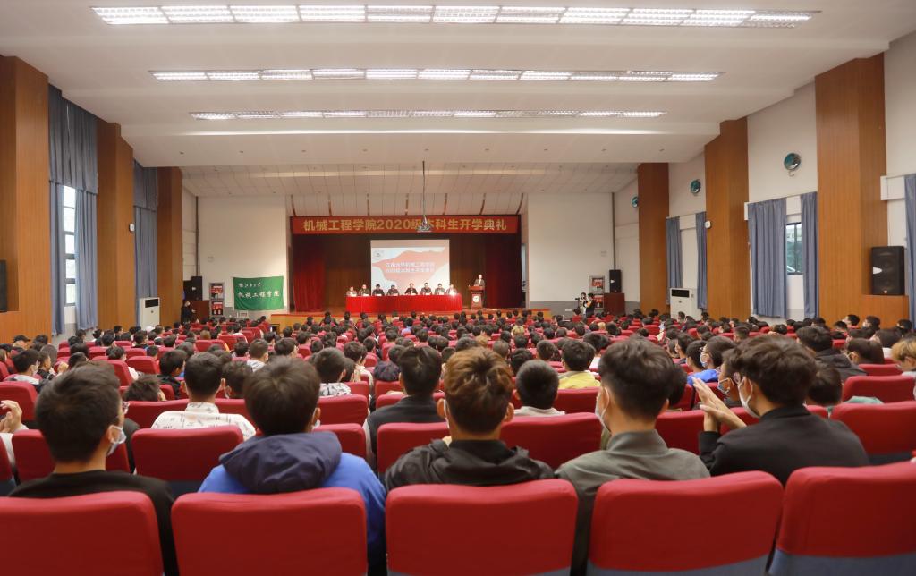 2020级本科生开学典礼在南区大学生活动中心报告厅举行。学院党委书记高雪梅、院长赵军华、君远学院院长兼机械学院副院长李可、院党委副书记兼副院长方俊、副院长王利强、副院长刘禹、机械工程系系主任俞经虎、过程装备与控制工程系系主任王东祥,青年教师代表缪小进和各年级辅导员、班主任出席开学典礼,2020级全体本科新生参加。大会由2020级辅导员潘智琦主持。
