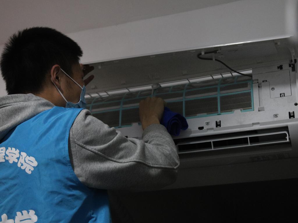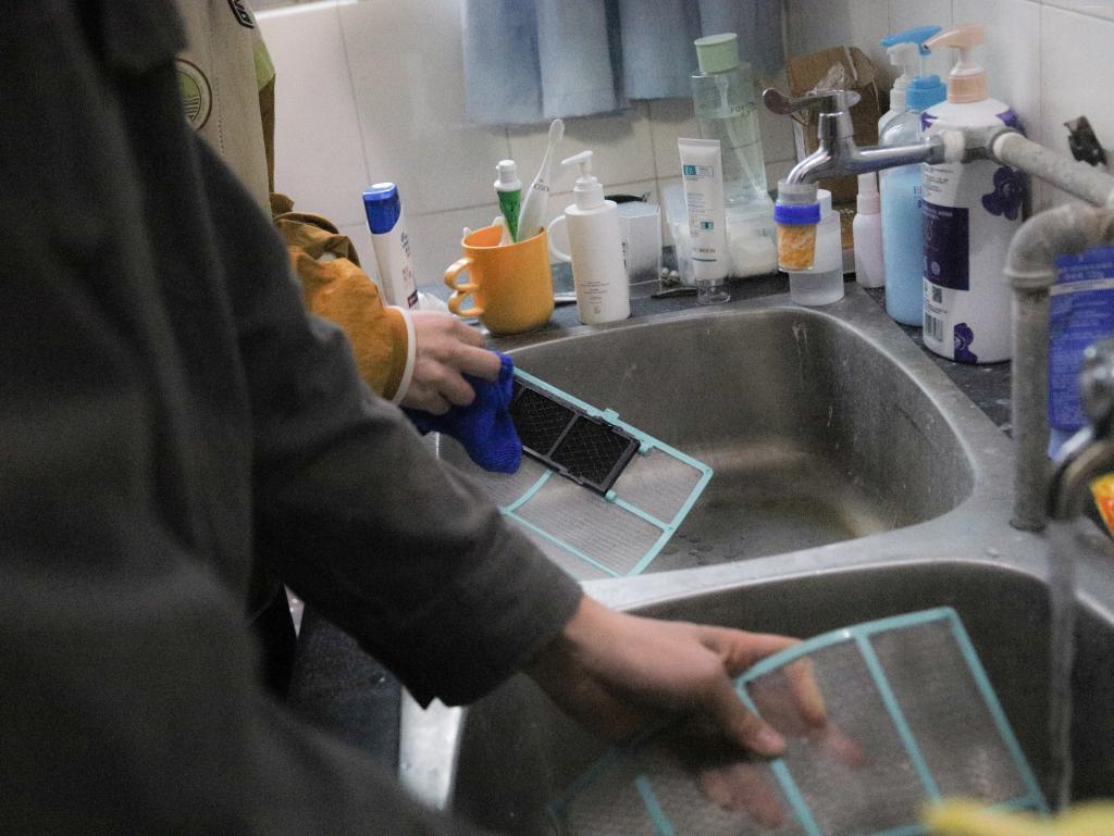 除学院楼宇卫生清扫工作外,辅导员工作室主动与园区沟通,为园区提供一些力所能及的帮助。4月29日下午,在孟飞老师的带领下,60位学员在榴园门口准时集合。学员们10人一队,每队负责16栋的一层宿舍。他们通力协作,发扬“不怕脏,不怕累”的精神,认真仔细地清洗空调过滤网,总计清洗了六层99间宿舍。