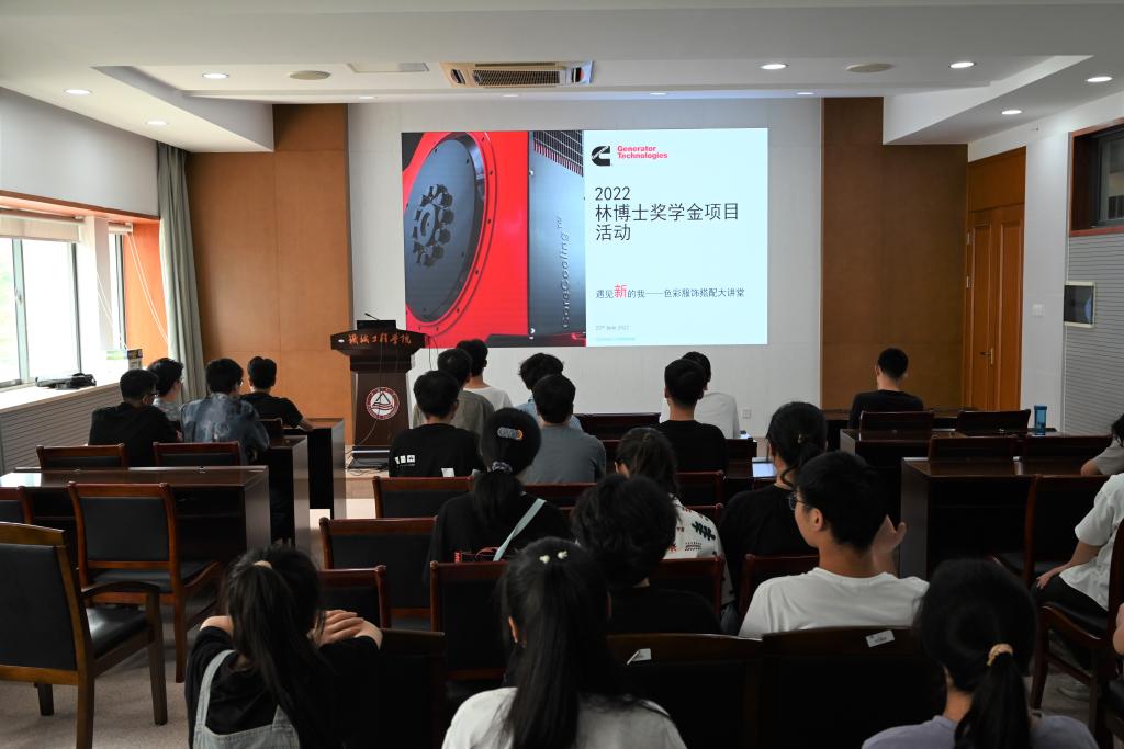 C302会议室举行,特邀燕妮职业培训学校金牌讲师在线分享职场服装穿搭技巧,54名学生参与,辅导员张倩瑶主持。该奖学金由中国妇女发展基金会发起,康明斯(中国)投资有限公司捐资设立,旨在奖励和资助品学兼优的贫困女大学生。