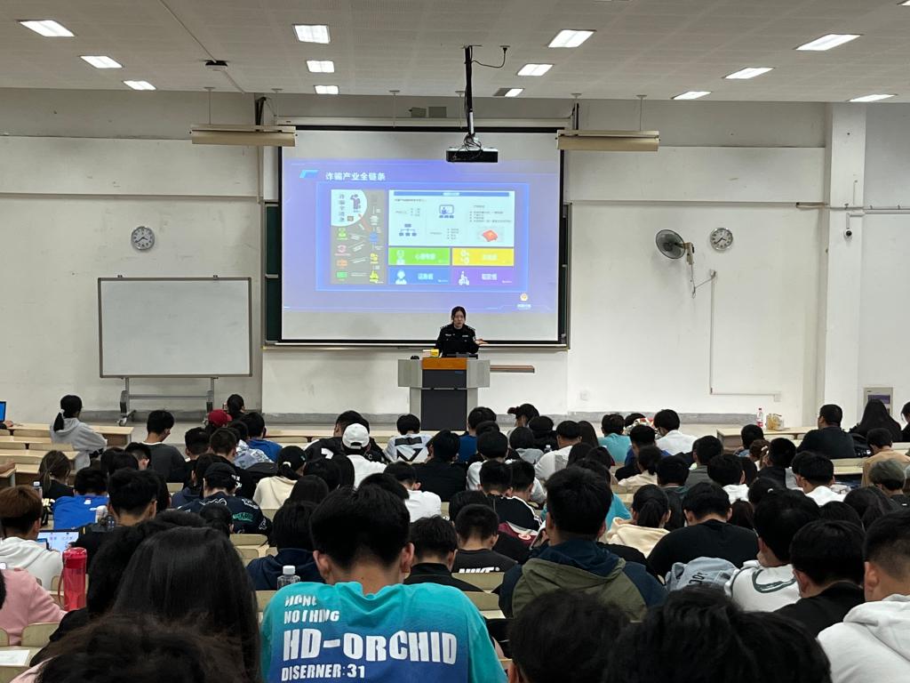 面向全体本科新生,开展防范电信网络诈骗专题讲座。此次讲座由雪浪派出所民警戴科主讲,新生辅导员张倩瑶主持,全体2022级本科新生参与。