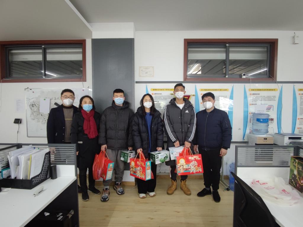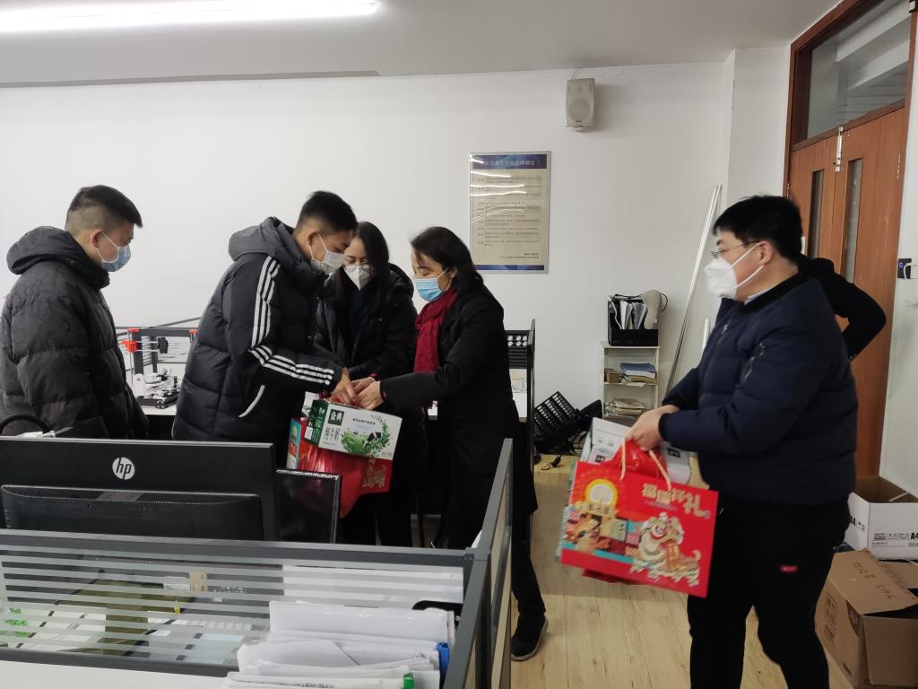 因科研等原因,假期留校学生包括12名硕士研究生、3名博士生。高雪梅带队走访学生工作室、实验室,亲切询问学生留校生活与科研情况,叮嘱学生在校期间注意安全,保持身心健康,学业上攻坚克难的同时不忘每天和父母电话、视频报平安。随后,老师们送上了新春礼盒、防疫物资、年午饭票及新春祝福。