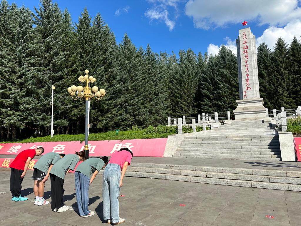 实践团在英雄纪念碑前向杨靖宇将军鞠躬致敬