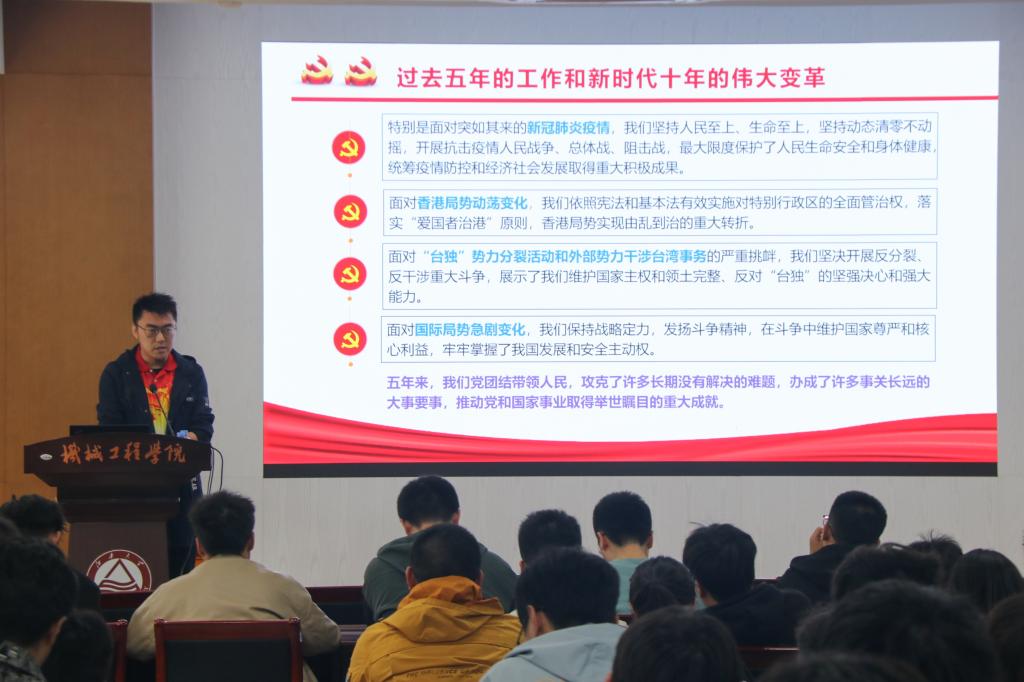 包装2101班刘阳代表本届学员发言。他表示,将珍惜此次来之不易的学习机会,端正入党动机,勇于砥砺前行;树立笃学理念,提升自我实力;坚持尚行实践,做到知行合一,以实际行动,努力向党组织靠拢,践行“奋进有我,强国有我”的誓言。