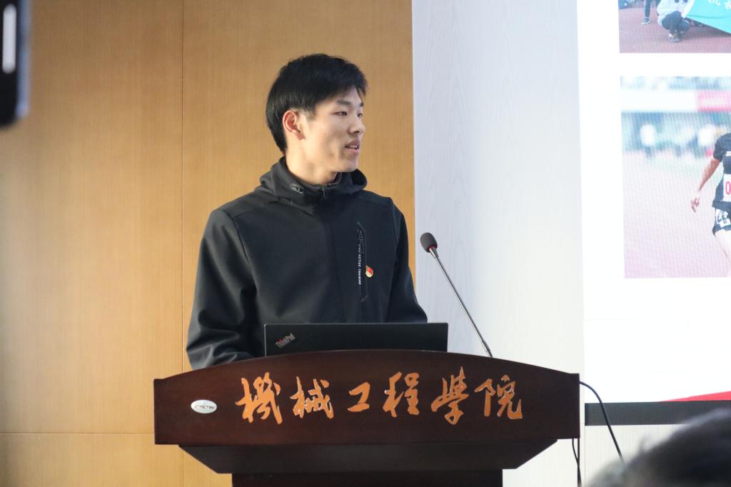 ,本科期间参与工程实践与创新能力大赛获全国银奖。他从精益求精在竞赛实践中寻求突破的经历讲起,分享了从本科到研究生的身份转变与适应过渡,鼓励大家以平常心面对生活中的各种困难与瓶颈,不退缩、敢担当,以积极心态突破自己,成长成才。王鹏飞荣获2022-2023年度国家奖学金,是一名全面发展的机械体育人,本硕期间共斩获校运会金牌11枚。他分享了“无体育,不机械”的成长故事,讲述了机械田径队从低谷到壮大再到突破的历程。他认为体育对机械学子意义重大,不仅体现在强健体魄,更体现在磨练意志、坚定目标、敢打敢拼、团队配合的体育精神,鼓励大家成为有韧性的机械青年。彭鑫硕士期间发表论文两篇,授权发明专利一项,参与国家自然科学基金等项目,现已签约远景能源,投身新能源风电行业。他介绍了自己的研究方向,分享了自己在科研与就业中立足国家需求、投身智能制造的选择。他认为青年成长中最重要的是锻炼发现问题、分析问题、解决问题的能力,以及着眼国家需要、将个人成长融入社会发展全局的担当。