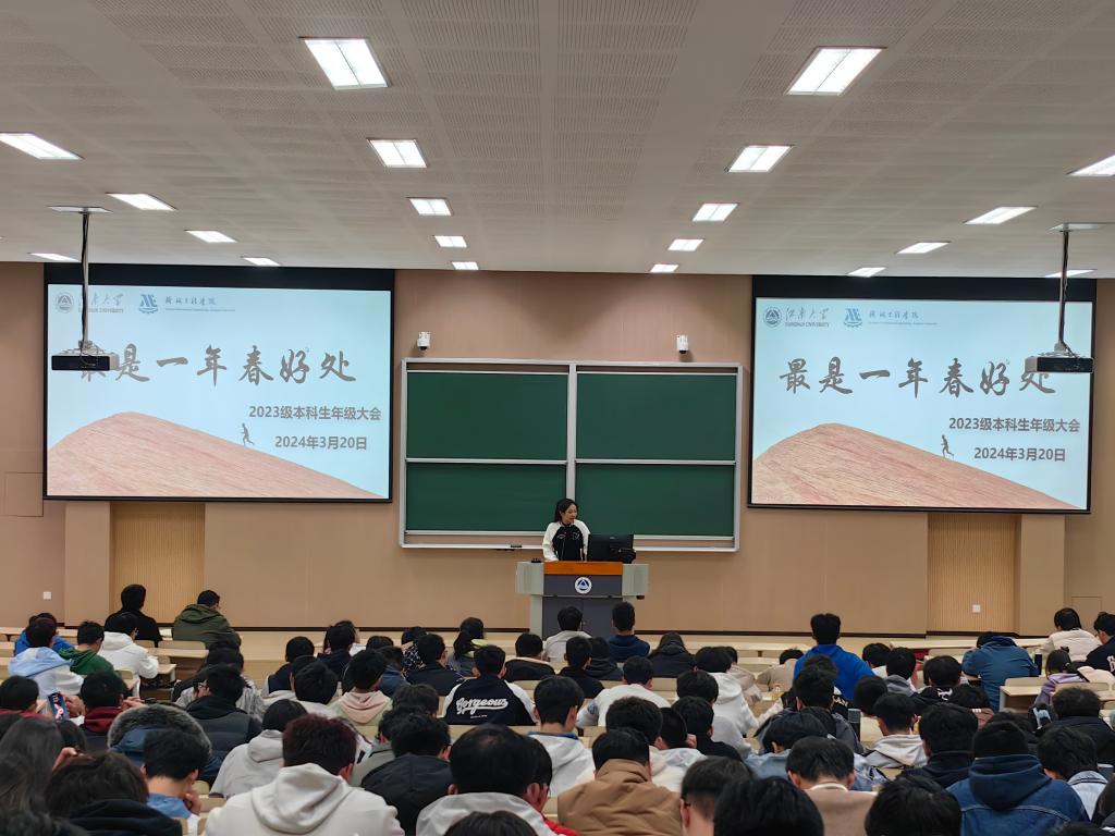 本科各年级围绕校园安全管理、心理健康、学风建设、规划发展于开学初组织召开了年级大会,学院党委副书记、副院长刘升恒,教务办沈贤、各年级辅导员,全体本科生参加会议。