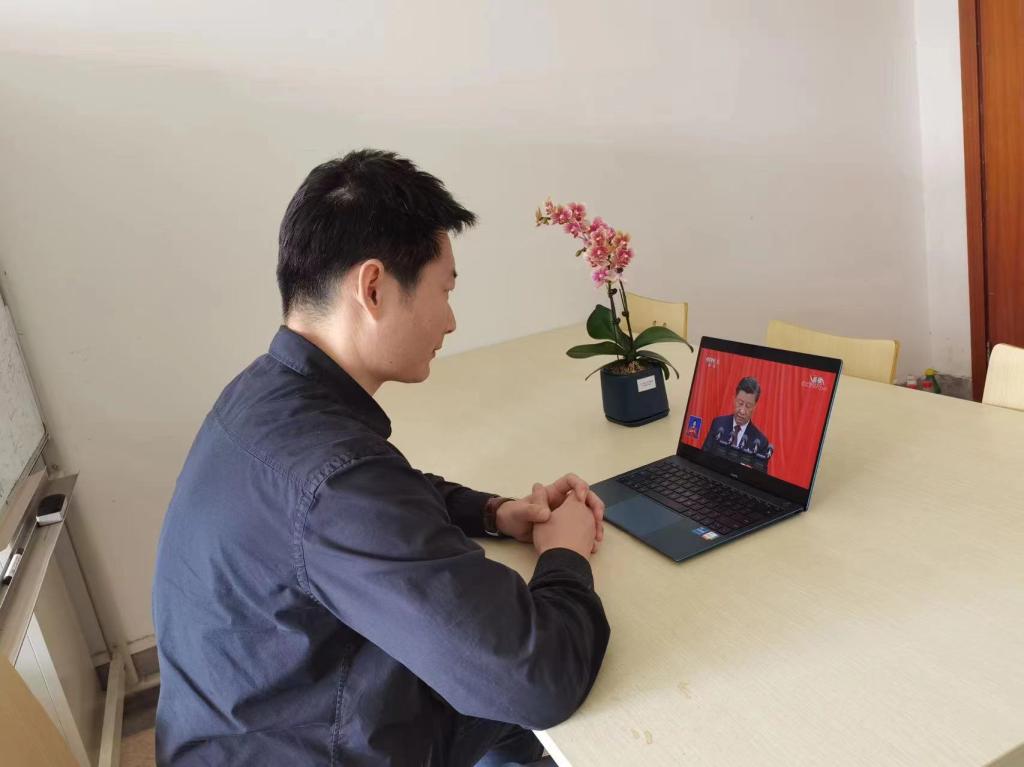 先进制造研究中心党支部党员牛云腾:盛景见证非凡,奋斗续写华章。党的二十大胜利召开让我看到十年弹指一挥间,新时代的中国每一瞬间都在创造奇迹、书写历史。作为预备党员,我会全方位完善自身能力,做合格的中华追梦人!