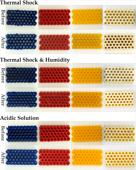 图1(a)近红外辅助3D打印技术和(b)增材制造的多色彩、高性能聚合物部件