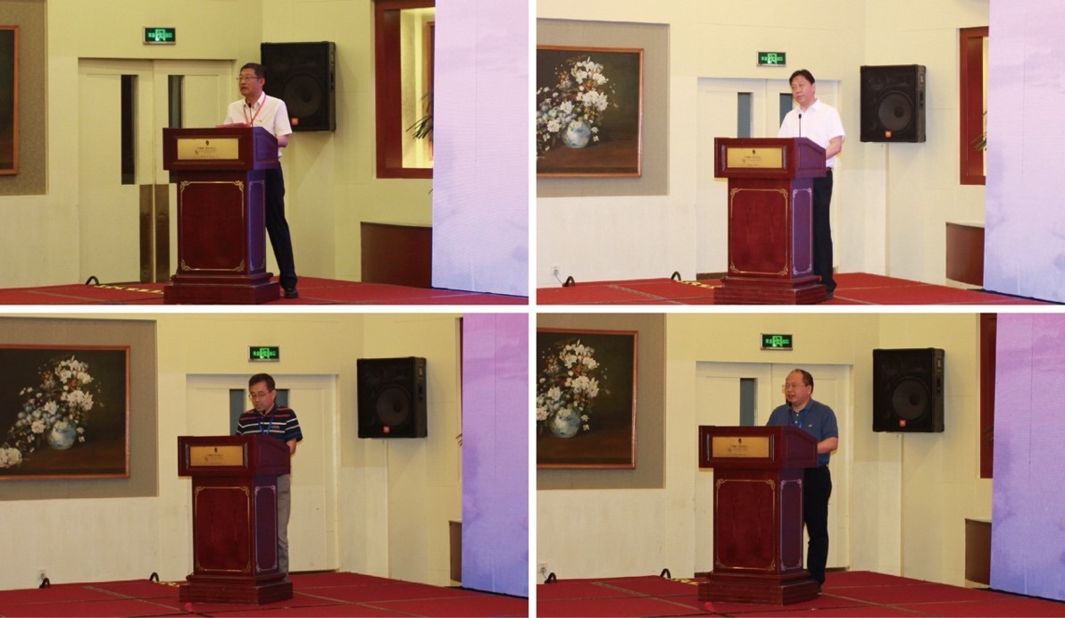 校长陈卫院士(上左)、无锡市科协陈晓华主席(上右)、中国机械工程学会材料分会胡军秘书长(下左)以及中国机械工程学会材料分会青年工作委员会主任蔺永诚教授(下右)致辞