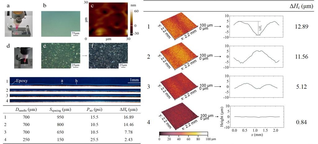 直书写(DIW)3D打印传感器同时具有较高的灵敏系数和良好的延展性,近年来得到了广泛的关注。此类传感器具有多层结构的特点,其界面平整度和界面强度分别是决定传感器制造精度和结构完整性的两个重要因素。然而,由于材料的多样性和DIW技术固有的由线到面的成形特征,如何控制界面平整度、实现较高的界面强度以保证传感器的高性能依然存在一定挑战。