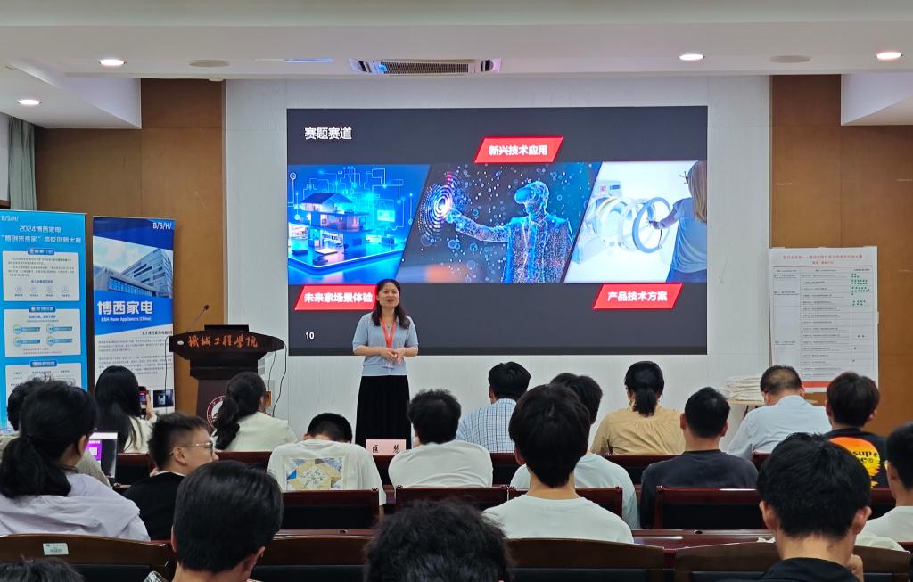 博西家电创新管理部负责人、博西家电“智创未来家”高校创新大赛项目负责人匡慧介绍博西家电的产品创新以及本次赛题,人力资源部雇主品牌负责人曹佳薇为同学们推介暑期实习项目,并鼓励大家结合自己感兴趣的赛道积极参赛。提问环节,来自同人漫画