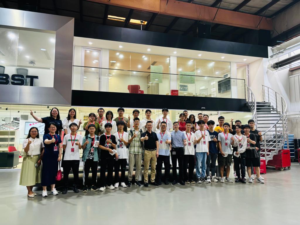 随后举行了2023年度博斯特奖学金的颁奖仪式。获奖者薛雨诗表达了对公司设立科创竞赛的感谢,并分享了自己在完成科创项目过程中的收获与成长。她表示这次参与公司出题的科创竞赛,是将所学理论知识运用到实践的有意尝试。组队参加的方式也更好地培养了团队合作意识,拓展了机械创新设计的新视角。颁奖仪式后,师生一行共同参观了公司的展厅和工作车间,现场观摩学习智能制造领域的前沿技术与先进装备。工作人员细心讲解并演示了机器生产原理,从纸板进料、折叠、胶装到装箱一气呵成,转眼间一张张纸片变成了精美的包装盒。在公司技术人员的讲解下,同学们发现复杂机器的设计其实就是课堂所学基本原理的实际应用,现场教学加深了同学们对机械原理的理解和认知。