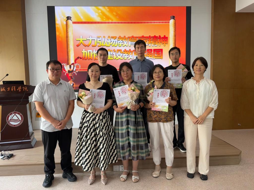 在机械楼C302会议室举办了庆祝第40个教师节暨教职工表彰大会,庆祝教育工作者共同的节日。会议由学院工会主席钱静主持。