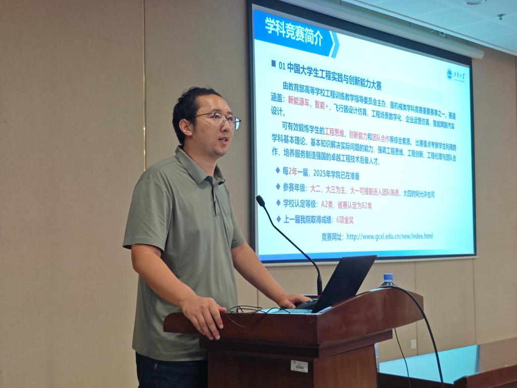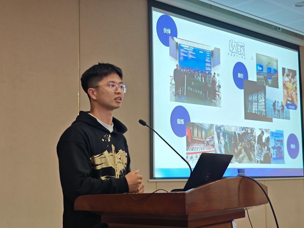 卞达以“工科生的进阶之路”为题介绍了学院以高水平学科竞赛为依托的创新教育培育体系。2021级机械工程专业本科生王永康作为优秀学生代表结合大学期间的竞赛经历与同学分享了参与学科竞赛的收获与成长,他鼓励同学们团结协作、笃志前行、勇于面对挑战,感受科学世界的无限魅力。