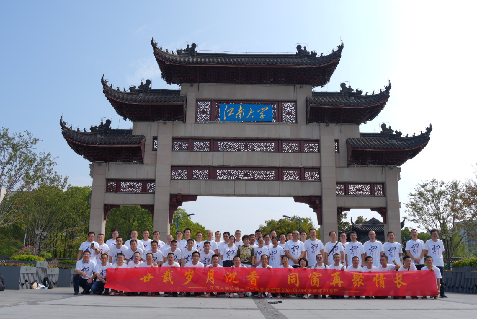 从梅园、龙山到长广溪畔,20年再聚首,同窗情谊深似海。本次返校校友来自机械工程2001级7、8、9三个班级,共70余人。会后,校友们游览了校园,在体育场上举行了足球友谊赛。蔚然成风的机械体育精神,在赛场上团结拼搏的江南机械人,成为校园里最靓丽的风景线。