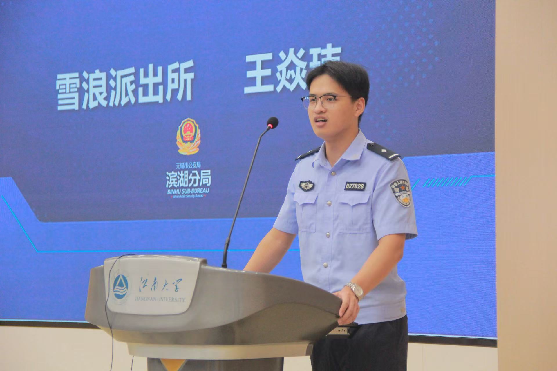 无锡市雪浪派出所的王焱玮警官为同学们带来一场实用的防范电信网络诈骗讲座。他列举近期骗局案例,解析诈骗话术与心理操控手法,并现场教学如何识别陷阱、保护个人信息。王警官提醒同学牢记“三不原则”——不轻信、不点击、不泄露,并呼吁大家“不仅自己防骗,也要做反诈宣传的志愿者”。