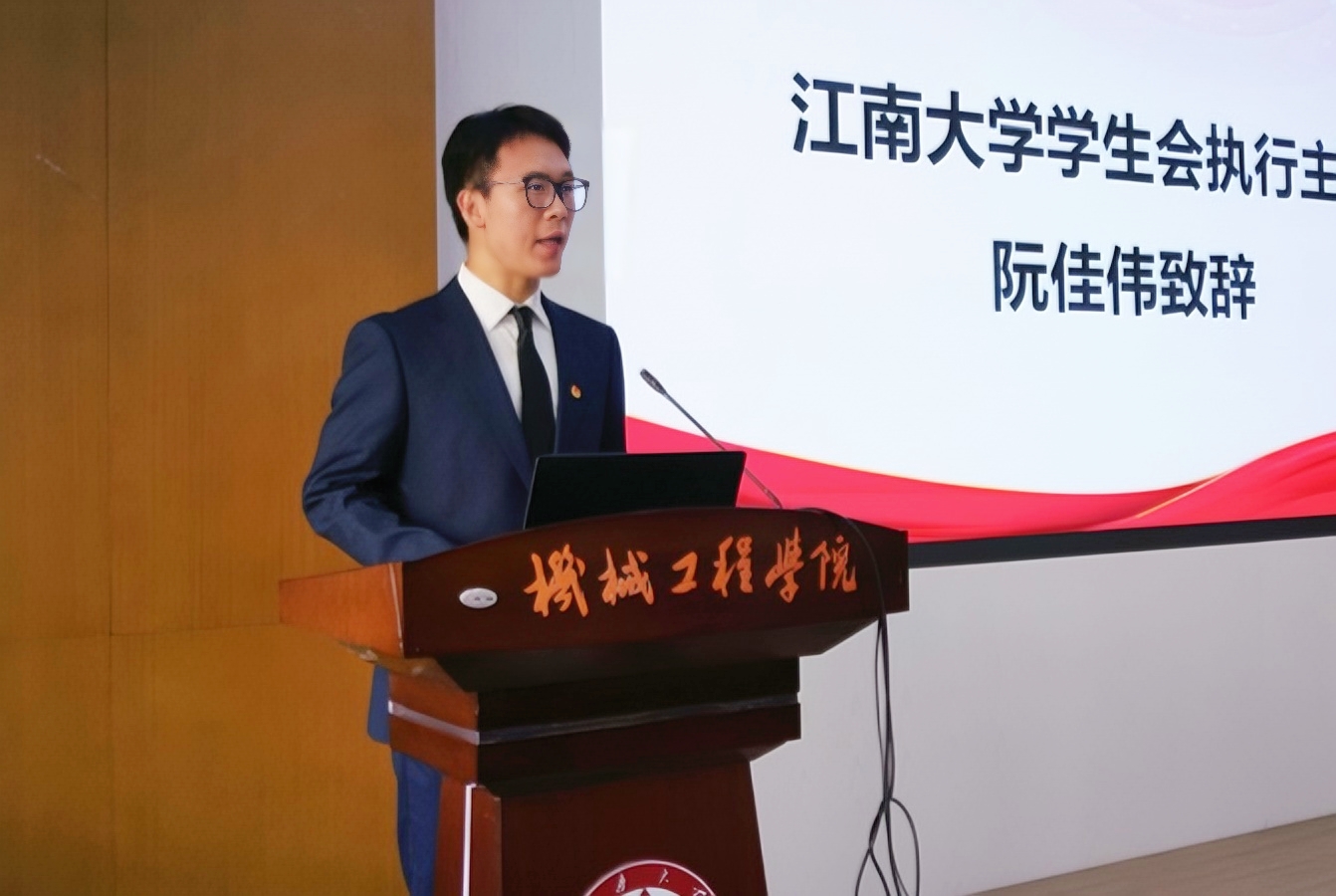 学生会执行主席阮佳伟也代表校学生会向大会召开表示祝贺并致辞。