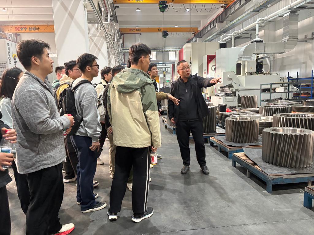 在恒温22摄氏度的智能化车间内,师生们实地观摩了齿轮制造全流程。车间内三分之一的设备为国产高端数控机床,充分展现了企业在推动核心技术自主化方面的战略布局。技术负责人现场演示了精密齿轮加工工艺,并详细解读了智能化生产线在提质增效、保障精度中的关键作用。研究生围绕齿轮传动系统的技术迭代、国产装备研发进展等与企业工程师深入交流;本科生则对生产工艺优化、职业能力需求等踊跃提问。企业负责人表示,未来将持续加大研发投入,以创新驱动引领齿轮制造领域的技术突破。