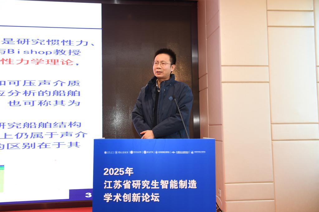在特邀报告环节,邹明松研究员作题为“水中结构振动声学计算的解析/数值混合方法”的学术报告,深入探讨了船舶三维声弹性理论及应用。他详细阐述了相关理论框架、以及自主研发的国产船舶三维声弹性分析软件THAFTS-Acoustic。报告不仅突显了三维声弹性在大国重器设计制造中的重要性,还展示了其在解决实际问题中的应用潜力。沈星教授作题为“变体飞行器结构与驱动领域关键技术研究报告”的学术报告,从变体飞行器面临的技术挑战出发,分析了变体飞行器结构、变形蒙皮以及新型驱动器,深入探讨了相关领域中的关键问题等,并鼓励同学们面向国家重大需求开展科学研究。武美萍教授作题为“高参数汽轮机叶片表面强化与修复关键技术研发及应用”的学术报告,面向服役温度瓶颈难突破、叶片服役性能难提升、高精高效修复难调控等三个挑战,阐述了高参数汽轮机叶片抗氧化/抗固体颗粒冲蚀及高精高效修复的关键技术问题。宿磊教授作题为“微系统先进封装智能检测技术”的学术报告,从新一代芯片封装出发,介绍了封装工艺质量控制的关键技术瓶颈以及封装缺陷检测的新方法、新技术等,并详细介绍了团队近年来在该方向取得的研究进展。