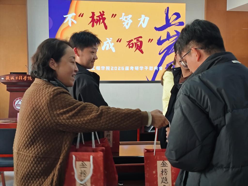 于11月28日上午在学院楼C302开展“暖心护航,研途绽放”2026届考研慰问活动,学院党委书记高雪梅、党委副书记、副院长刘升恒、系部主任,2022级班主任及百余名考研学子齐聚一堂,共赴这场温暖的考前之约。