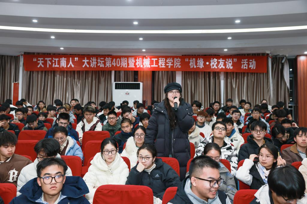 在互动环节,蒋苏南就学业规划、科研能力培养等问题与同学们交流,建议夯实专业基础、关注科技前沿、培养系统思维与国际视野,现场气氛热烈。