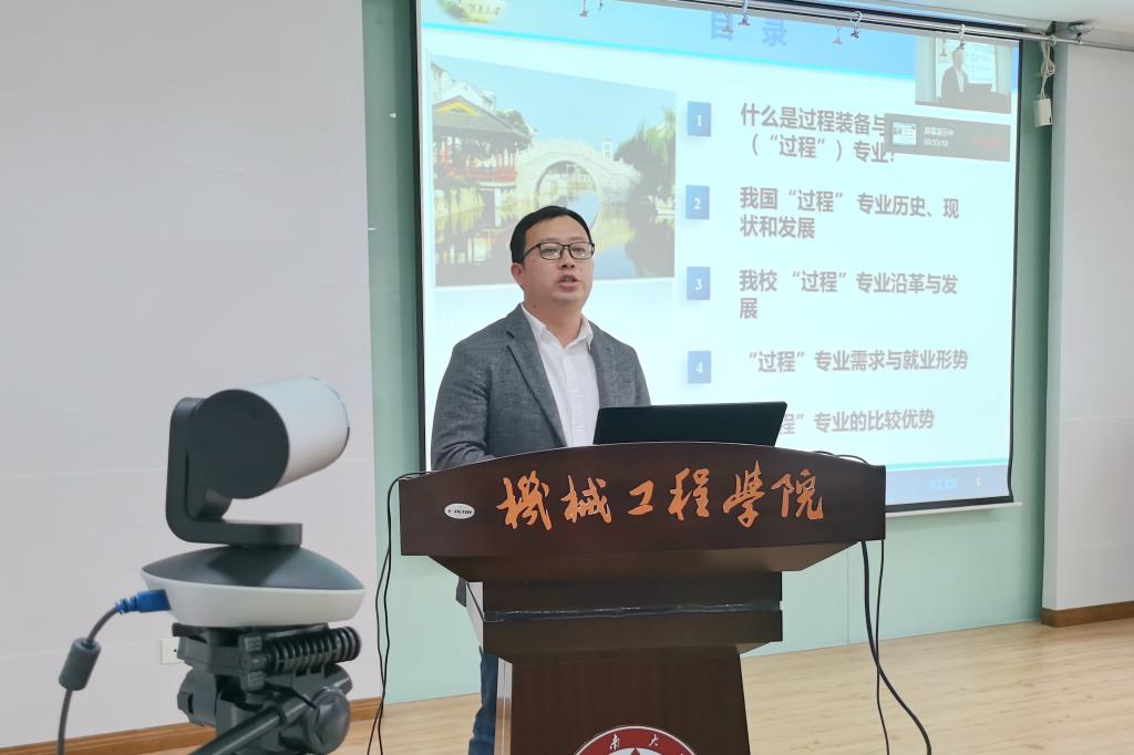 副院长俞建峰、机械电子工程专业周德强老师、机械工程专业俞经虎老师、过程装备与控制专业王东祥老师到场宣讲。宣讲会由2019级辅导员李志超主持。